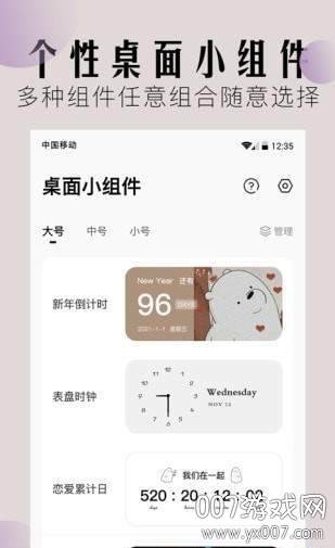 APP内现已集成多种类型、不同功能的小组件,满足你对桌面美化的所有想象。