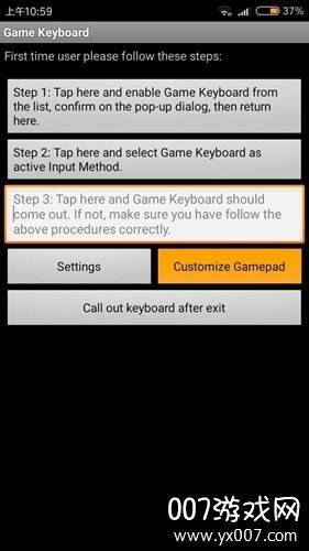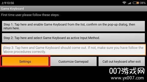 第五步: 按下手机返回键,回到Game Keyboard主界面,然后点击右下角的“Customize Gamepad”。
