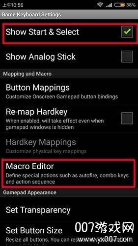 第二步: 勾选“Show Start&Select”,然后点击下方的“Macro Editro”。