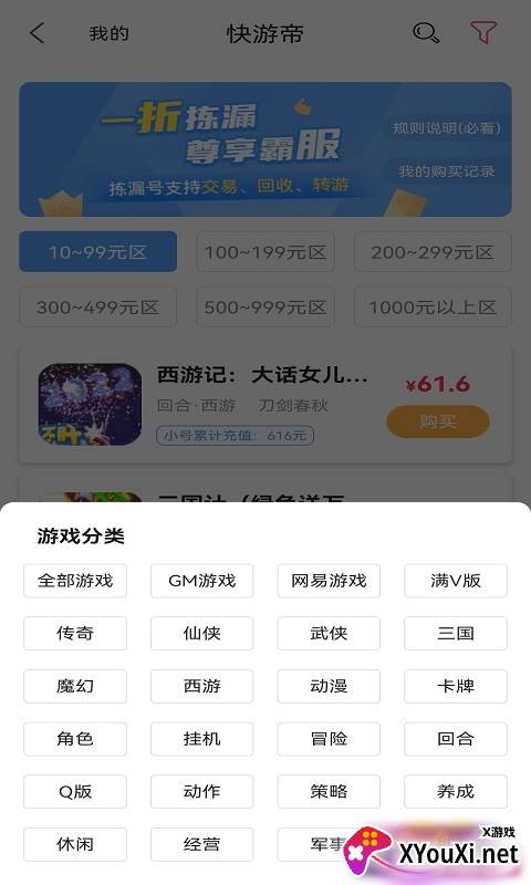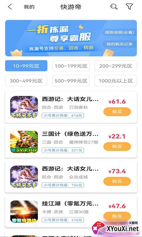 快游帝,专为游戏玩家打造的福利宝地,提供便捷的游戏账号交易服务。平台将账号按价格区间细致分类,让你如同寻宝一般,迅速锁定心仪的游戏账号,告别大海捞针的烦恼。