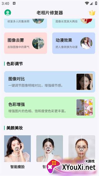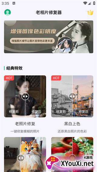 “老相片修复器”是一款集智能修复与上色于一身的利器,它能精准捕捉照片的破损之处,无论是时光留下的斑驳痕迹,还是岁月侵蚀的发黄,亦或是旧设备留下的模糊印记,都能通过一键修复,化为高清的影像。对于那些低分辨率的网络图片、压缩损失画质的图片、视频截取的画面、拍照时未能精准合焦的照片,甚至饱经沧桑的黑白老照片,它都能施展魔法,进行惊人的画质增强与修复,让您的记忆清晰如昨。