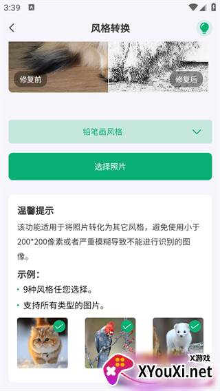 - 想要为照片注入新的灵魂?“风格转换”功能将助您一臂之力,轻松将照片转化为您钟爱的风格。