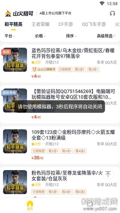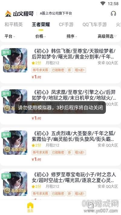 山火租号APP,不仅仅是账号租赁,更是游戏体验的升级!