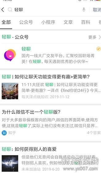 2. 接着,在微信中搜索并关注“轻聊”官方公众号。