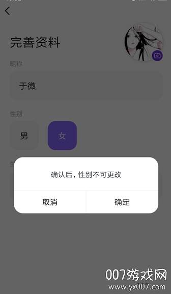 8. 最后,请完善您的个人资料,请注意,性别信息一旦选择将无法更改。