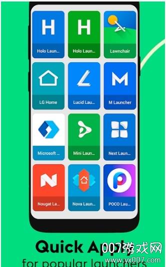 - 广泛的启动器兼容性: 支持市面上绝大多数主流启动器,如Action Launcher,ADW Launcher,Apex Launcher等,以及部分启动器的特殊设置,让你无需担心兼容性问题。