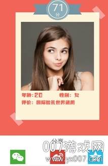 这是一款专为你的脸部美貌“负责”的计分器!美与否,无需争辩,有颜就来玩,美貌就该尽情展示!选择你想测试的照片,立刻就能知道你的颜值有多惊艳。还在等什么?快来给你的脸蛋一个“分数”吧!