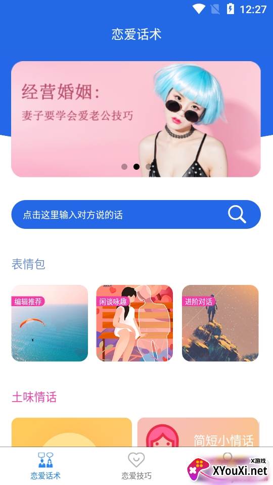 “妙语千寻恋爱免费版”是一款专为单身人士量身打造的互动交友软件,旨在助您掌握必备的恋爱话术技巧,告别与异性聊天时的词穷与尴尬。更有专家分享的干货内容,助您轻松成为“撩妹达人”。