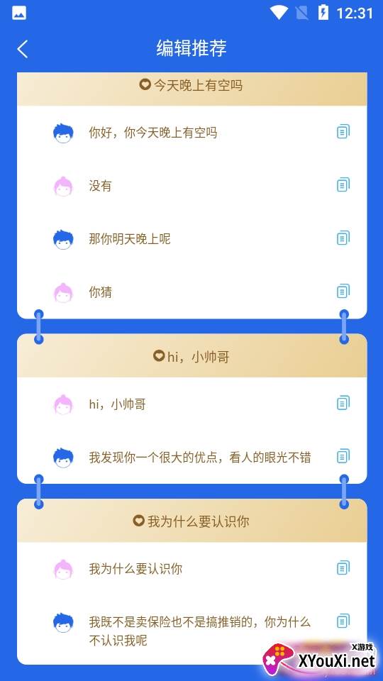 通过该软件,您与心仪对象的每一次对话都将充满技巧与魅力,让交友过程更加顺畅便捷。它更是一站式解决您在恋爱过程中遇到的各种烦恼的得力助手。