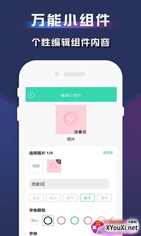 “万能小组件”内含丰富多样的插件,从炫酷时钟到精美照片,百余种Widget模板应有尽有。它是一款强大的照片组件设计制作工具,让你的手机桌面瞬间增添艺术气息。