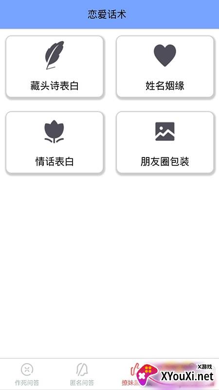 见面搭讪、日常聊天、情侣互动……海量场景话术应有尽有,无论是“泡妞大法”还是“恋爱技巧”,这里都能满足你,为你的爱情保驾护航。