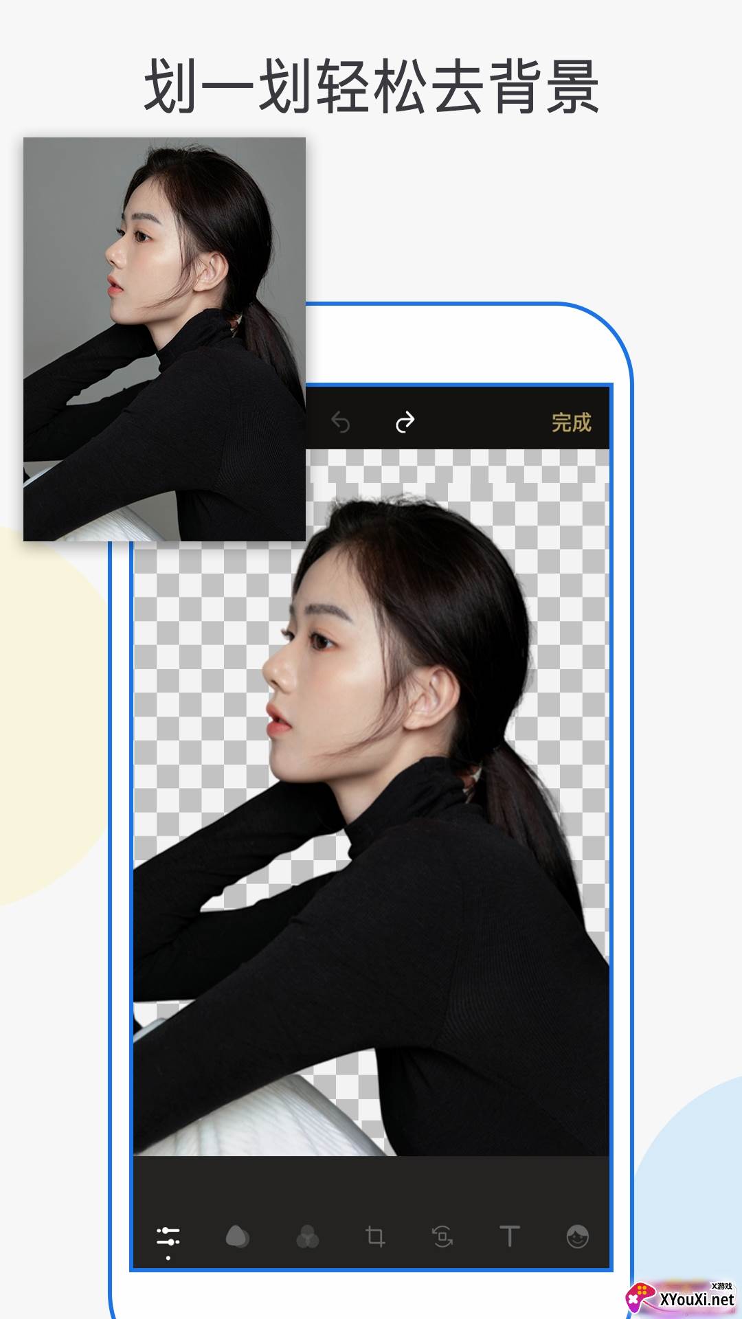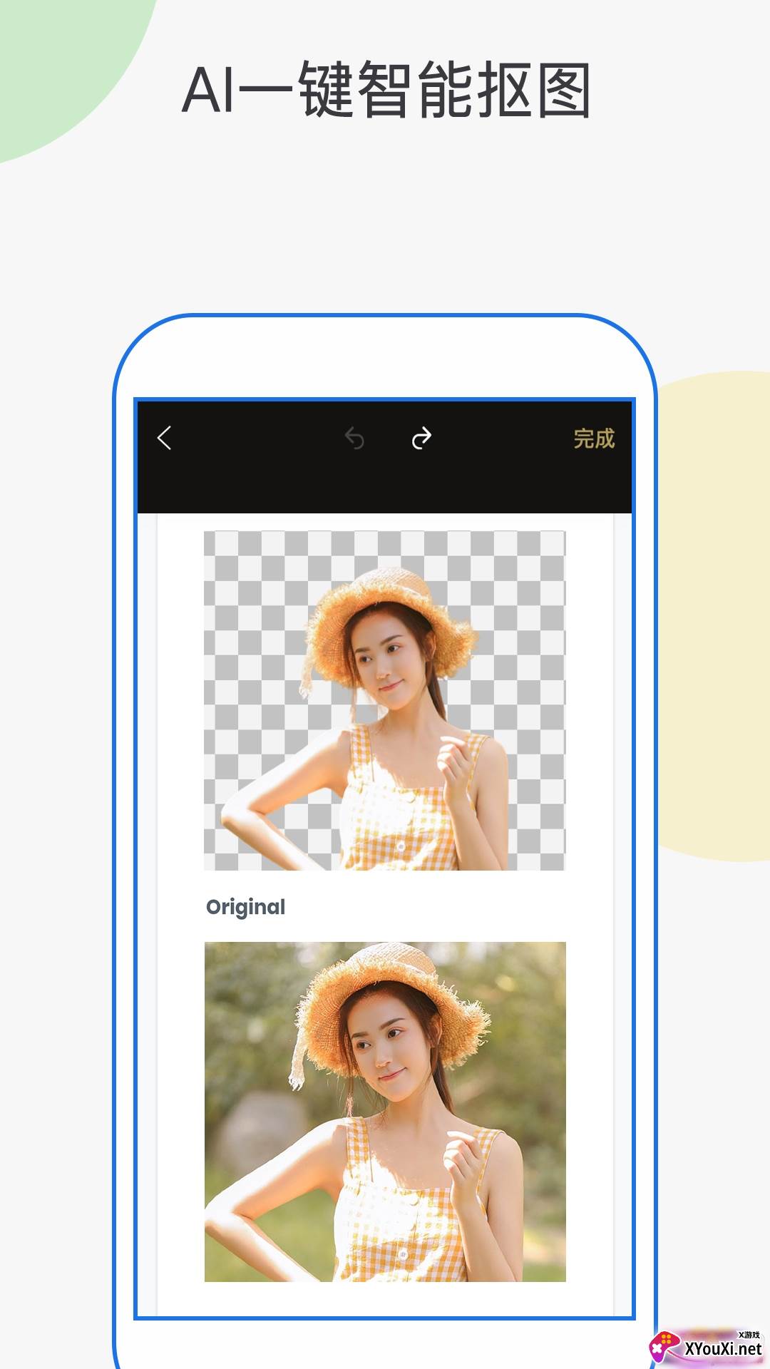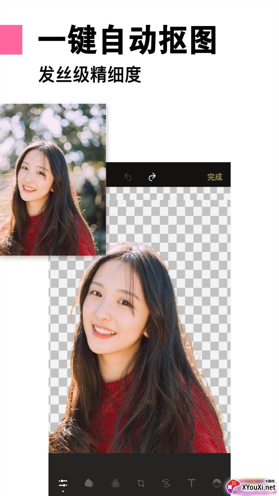 2. **一键自动抠图,手机即是影棚**:强大的自动抠图功能,仅凭一部手机,即可轻松完成专业级P图操作。