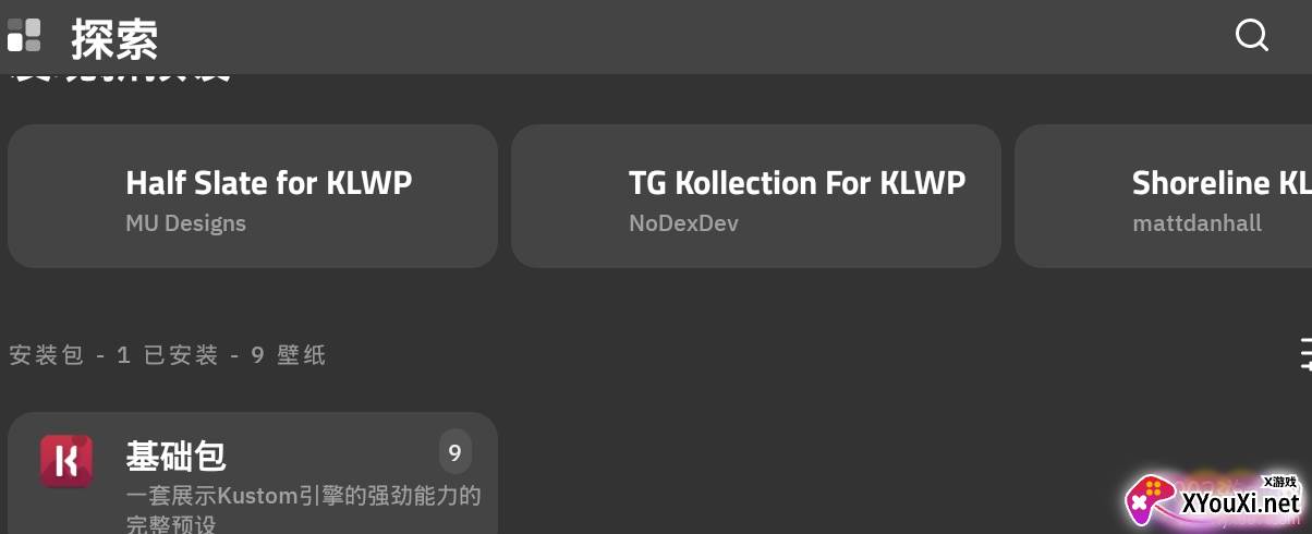 KLWP内置了一个基础包,其中包含了若干简约而不失格调的成品预设。它们不仅美观,更蕴含着丰富的编辑技巧,不妨一同拆解学习。
