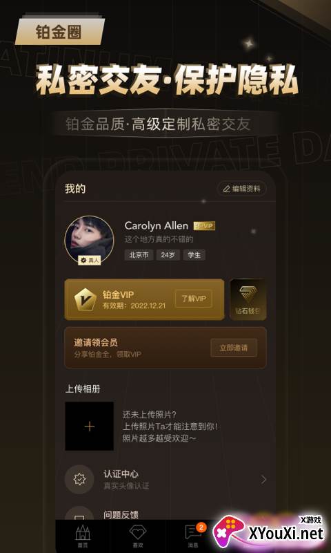 铂金圈汇聚了大量年轻用户,他们渴望结交新朋友,分享生活点滴。在这里,你可以打破常规,找到那个懂你、欣赏你的知己,一同分享兴趣爱好,让生活更加精彩。心动不如行动,立即下载体验!