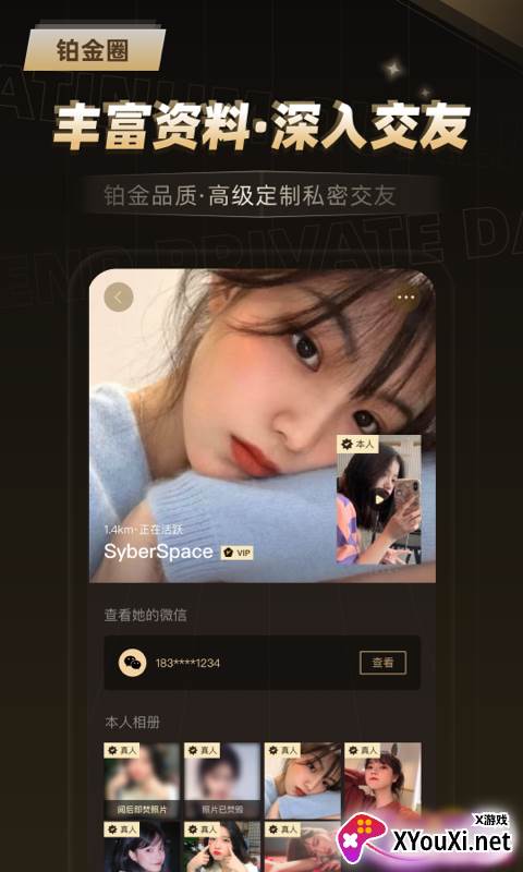 - 铂金品质,真实可靠:所有用户均经过真人刷脸和实名认证,素质有保障,告别虚假信息。