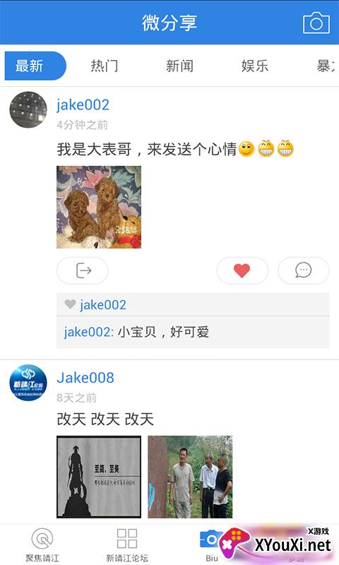 - 轻松浏览新靖江社区的各大论坛板块,随时随地留言、分享、点赞,互动零距离。