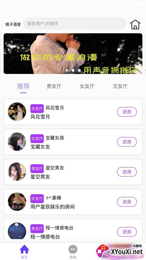 桃子语音app,一款全新问世的手机社交新宠,它以海量高素质用户和多元化的社交互动方式,为你打开了一扇通往精彩社交世界的大门。无论是通过一键匹配附近的有缘人,还是沉浸在丰富多彩的语音聊天房间,都能让你尽享平台带来的优质社交体验。心动不如行动,即刻下载安装,开启你的社交新篇章吧!