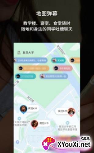 地图弹幕: 创新性的地图弹幕功能,让你在教学楼、寝室、食堂周边,随时随地与身边的同学互动、吐槽,让你的社交充满趣味和惊喜。