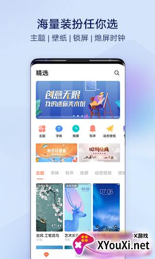 - 资源丰富,选择多多:专业设计师团队为你提供海量主题、字体、铃声、锁屏、壁纸、熄屏时钟(部分机型支持),总有一款让你心满意足。