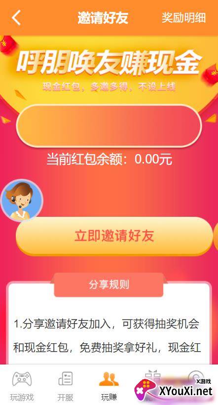 1. 分享有礼:邀请好友,即有机会获得抽奖机会,免费畅玩;