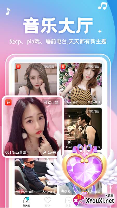 :想找CP?想体验语C、pia戏的乐趣?还是想在睡前电台放松身心?音乐大厅每日更新主题,与戏精小伙伴们一起嗨翻语音房!