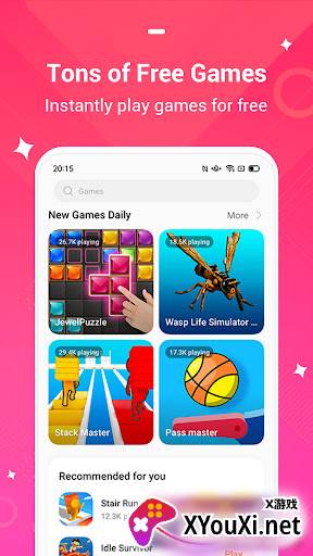 2. 近千款热门游戏任你遨游,随时随地,随心所欲,满足你的个性化游戏需求。