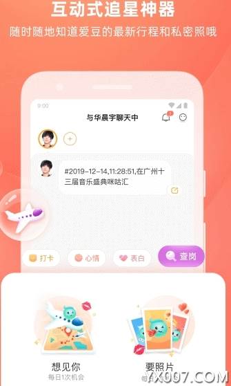 3. 即时互动,心意相通: 发送图片和文字,与你的爱豆进行零距离的交流。