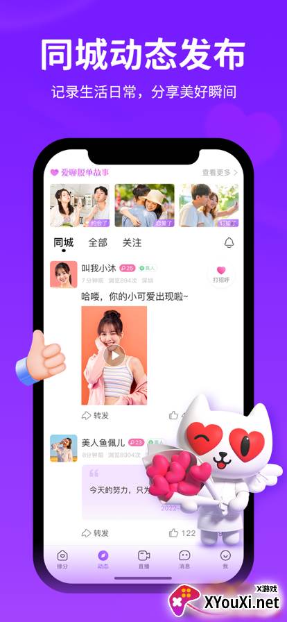 - 先视频,后约会: 拒绝“照骗”,真实颜值,高效沟通。视频认证先行,再约线下见面,大大提升匹配的可信度与亲密度。