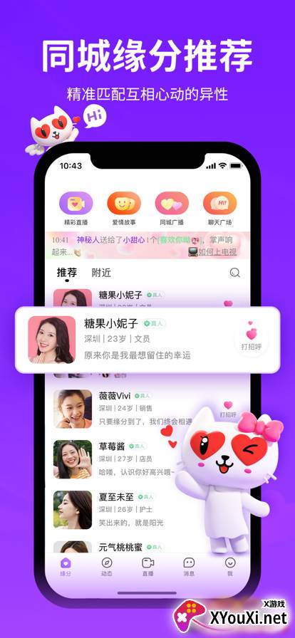 - 附近匹配,高效约会: 基于地理位置智能推荐同城异性,快速搭讪,匹配成功率飙升。让每一次约会都高效且充满期待。