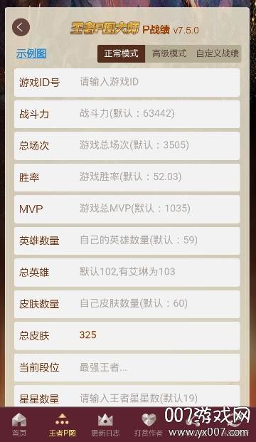 *   **个性战绩定制:** 可订制个性化的战绩信息,自由调整游戏段位、熟练度和战绩数据。