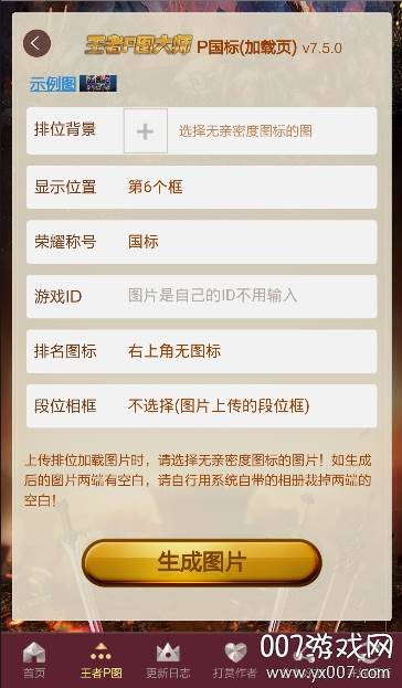 *   **个性化背景定制:** 用户可自由选择喜欢的英雄皮肤作为P图背景,打造专属视觉效果。