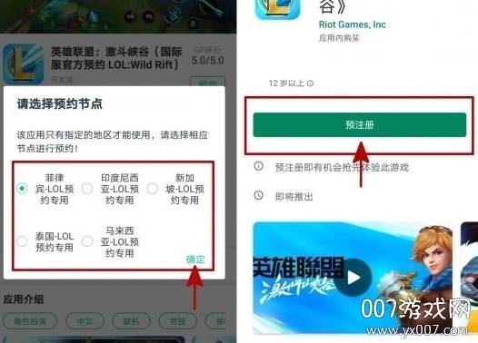 2. 选择你心仪的地区,系统将自动跳转至该地区的谷歌商店,完成预注册。