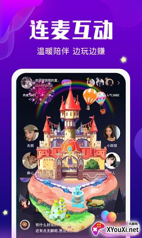 K歌、扩列、电竞、陪玩、相亲……海量娱乐主题派对,等你加入。多人语音连麦,畅聊无阻。丰富的炫彩礼物,多样的房间类型(相亲房、陪聊房、情侣房、K歌房),总有一款适合你。