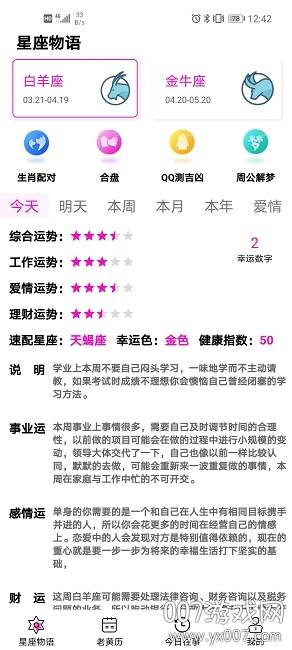 2、为您揭示星座指数,并提供贴心的友情提示。
