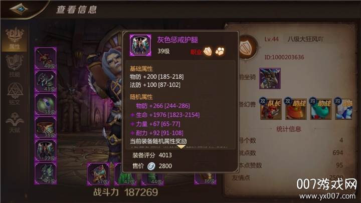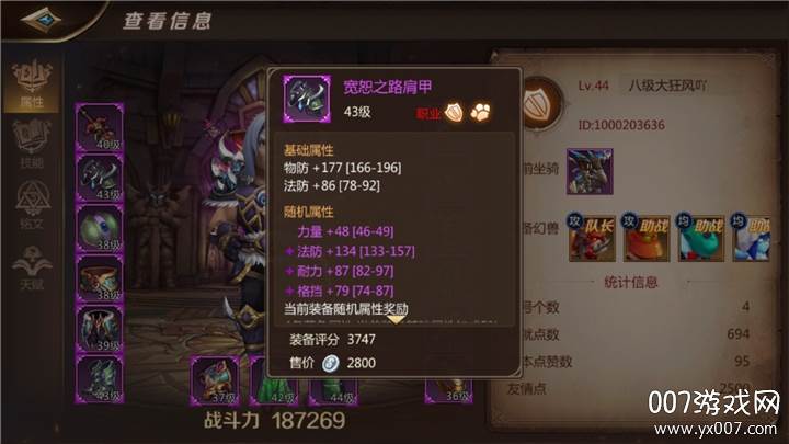 对于肩甲、护腿这类无法淬炼出攻击、暴击、穿刺属性的防御型装备,我们的首选属性是:**耐力、生命、格挡和力量**。