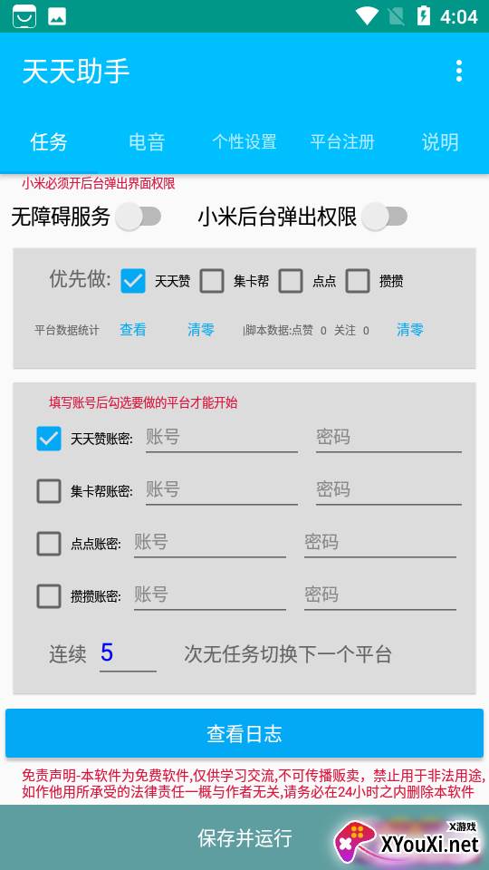 天天助手脚本最新版,集点赞辅助功能于一身,更整合了“攒攒”、“集卡帮”、“点点”、“小飞象”等多个平台,功能之强大,超乎你的想象!