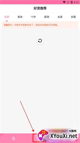 3. 点击底部中间,发现平台精选好货推荐。