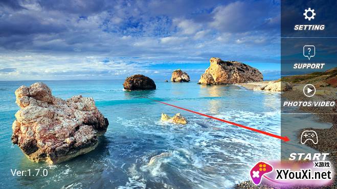 3. 点击屏幕上的“START”按钮,即可进入飞行准备界面。