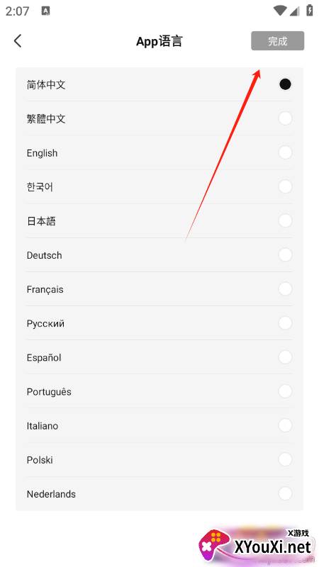 3. 接下来,您可以根据自己的偏好选择App的语言。以中国大陆为例,选择简体中文即可。