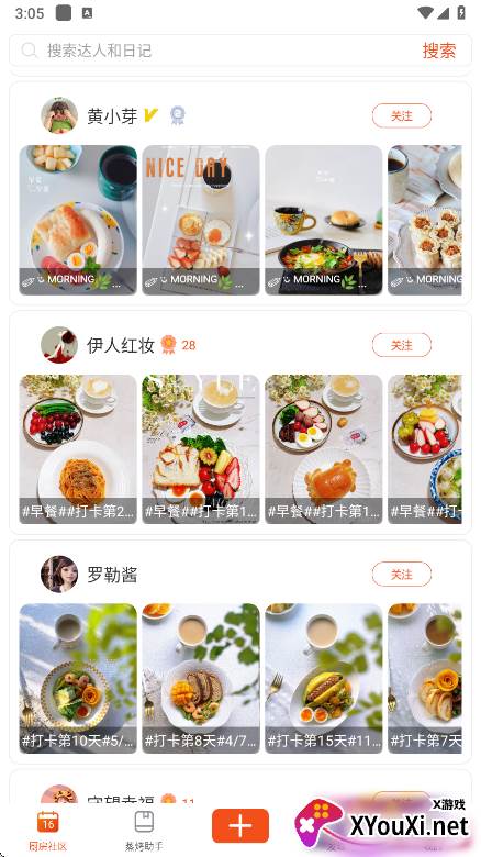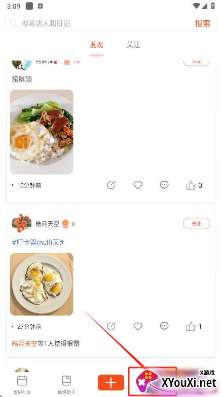 2. 向下滑动,可以查看其他用户的烹饪打卡照片。
