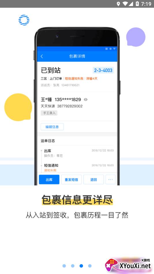 - 信息同步:最新物流信息系统推送,一键查询收寄件人等关键信息。