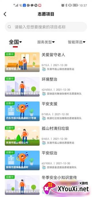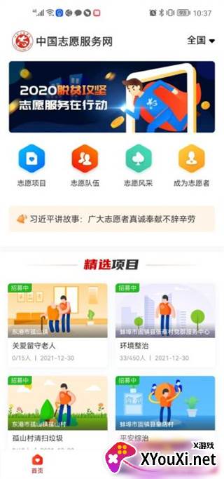 3. 登录成功后,首页的“志愿项目”等你探索。在这里,你可以根据自己所在的地区,筛选心仪的志愿活动。