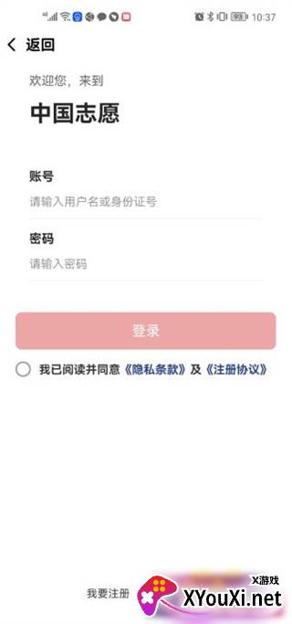 2. 初次见面,别忘了登录。点击“我的”,输入你的信息,或者注册一个新账号,开启你的志愿之旅。