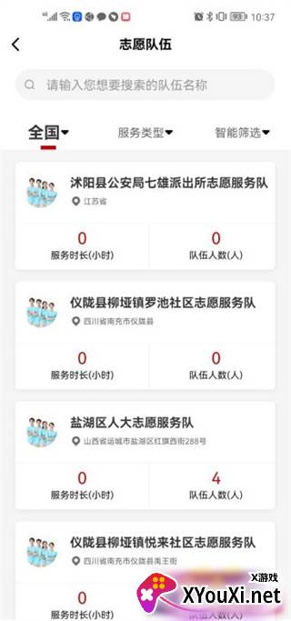 4. 旁边的“志愿队伍”板块同样精彩。同样需要根据地区选择,找到你想要加入的志愿服务团队。