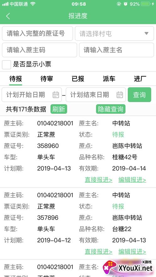 - 报进管理: 蔗糖报进工作可通过此模块查询指定时间段内的报进完成情况。