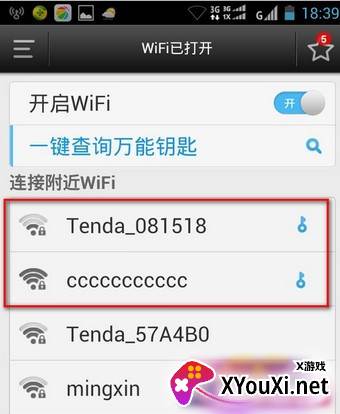 步骤二:您会看到多个WiFi选项,带有蓝色钥匙标志的即为可连接的热点。