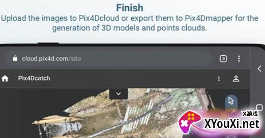 2. 上传:完成记录后,APP会自动将图像上传至Pix4Dcloud,生成精准且便于分享的3D模型。(需Pix4Dcloud订阅,提供15天免费试用。)