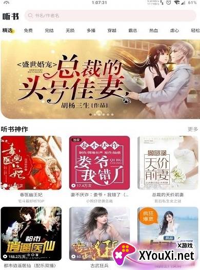 2、坐拥海量有声读物,从经典名著到热门小说,每日都有新鲜内容更新。全网百万小说任您畅听,玄幻、言情、武侠、校园、穿越、悬疑、历史、耽美、权谋、职场、科幻、灵异,以及各类经典图书,应有尽有。