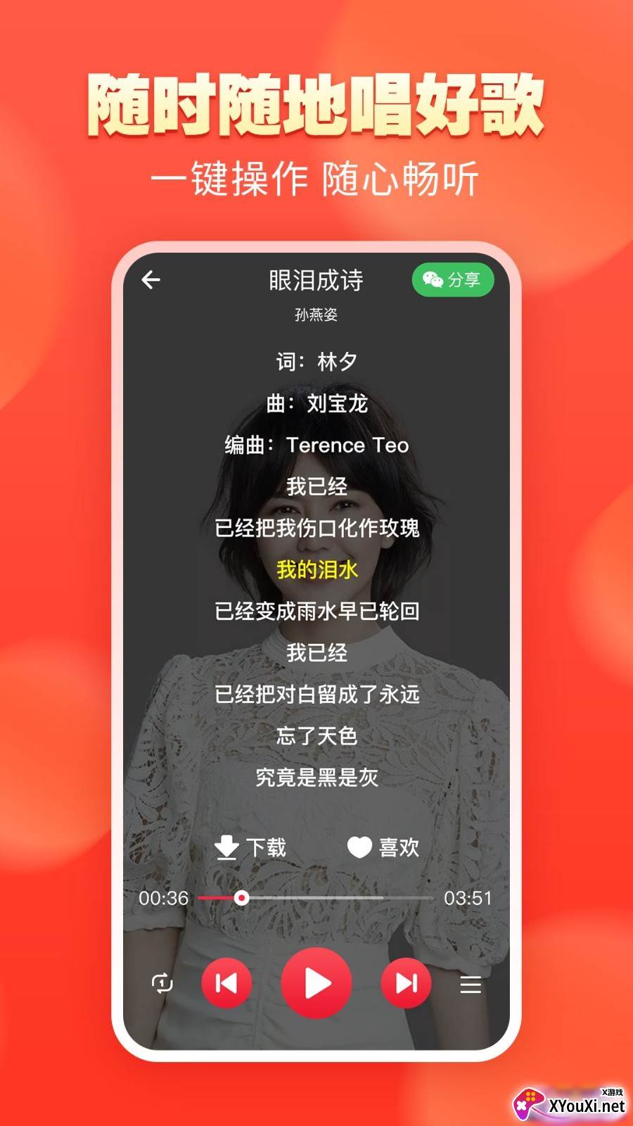 1. 免费畅听心头好,更能一键收藏或分享给好友,让好音乐传递。
