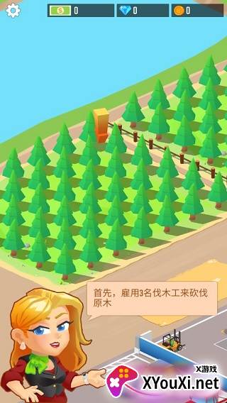 初入游戏,您将继承一家由亲叔叔托付的木材公司。为了让这家公司蓬勃发展、版图扩张,您必须积极招募得力工匠,引进先进的机械设备,凭借卓越的业务增长能力,将木材生意推向新的高度!然而,仅仅依赖伐木并非长久之计,您还需要雇佣植树工人,播撒希望的种子。若只顾砍伐,森林终将枯竭。唯有通过科学的土地购置、绿化发展,并辅以伐木与植树的良性循环,才能确保木材工厂的稳定与可持续运营。